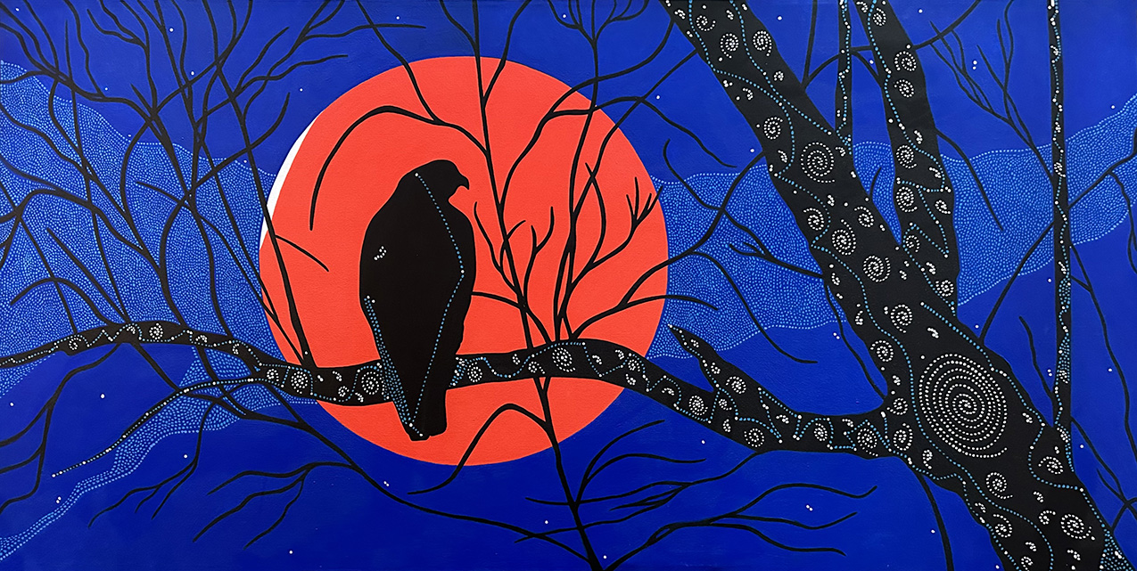 I met artists MaryBeth Garrigan and Petra Johnita Lommen[2] in the fall of 2023 when they shared some of their avian night sky paintings on a Zoom meeting of Starry Skies North,[3] a nonprofit organization devoted to reducing light pollution. They explained they were planning an exhibition of their avian art for late June–early July 2024, and they talked excitedly about the mystery and beauty of our dark starry skies, as well as how light pollution interferes with avian migrations, feeding, and breeding.